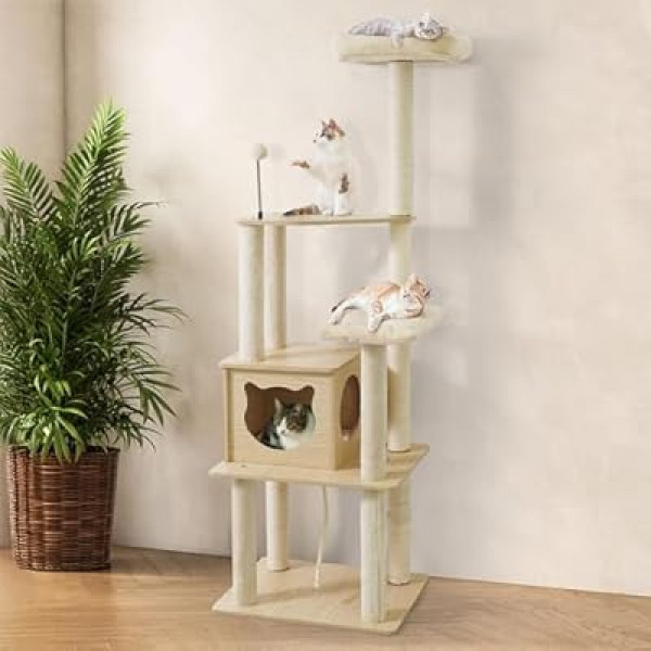 Research indicates that cats transition well to the wooden surfaces, especially when the included soft pads are utilized. While some users noted that the tower is tall, its vertical footprint is relatively compact, making it suitable for apartments or smaller rooms where floor space is at a premium.