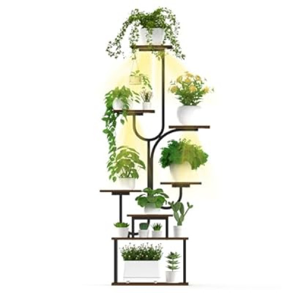 BRITEWAVE Botanical Stand for Indoors, 8-Tiered Corner Flora Rack with Growth Lamp, 61.42"…
