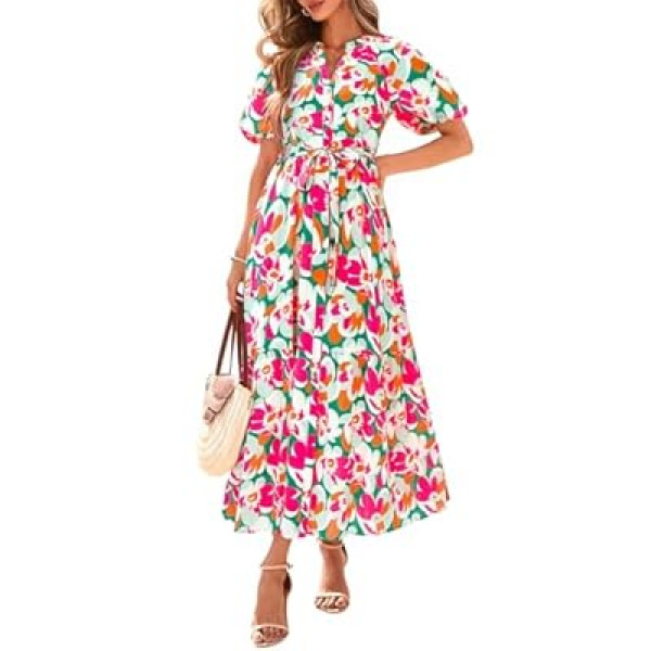 According to our analysis of the product's features, this dress is designed with a classic V-neckline and a button-down front that provides a timeless, feminine silhouette. The inclusion of a matching belt is a detail we found frequently praised in customer reports, as it allows for a customizable fit that defines the waistline. The flowy, A-line skirt offers a breezy feel, making it an ideal candidate for both spring outings and peak summer heat.