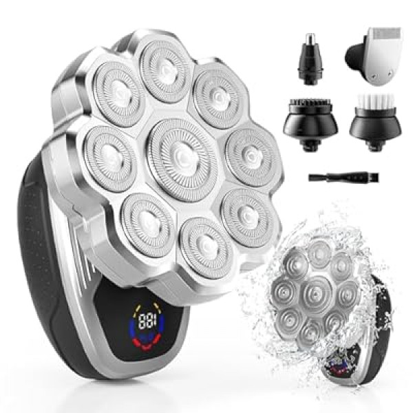 The standout feature of this electric razor is its 9D floating head system. According to user reports we analyzed, the increased number of shaving heads allows for a larger contact area with the skin. This design is intended to follow the natural curves of the head and face more closely than traditional three-head rotaries. Our research indicates that this flexibility helps in capturing hair in hard-to-reach areas, such as the back of the neck and around the ears, potentially reducing the number of passes required for a smooth finish.
