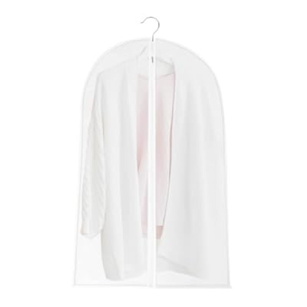 Pros: Affordable, clear visibility, perfect length for suits/dresses, and keeps dust at bay.