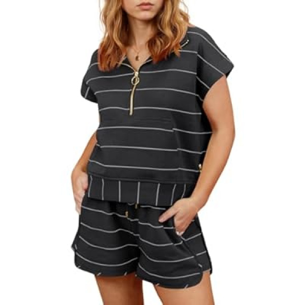 Finding the perfect balance between "put-together" and "completely relaxed" is the ultimate goal of summer fashion. Based on our research of the latest seasonal trends, the Fisoew Women’s Summer 2-Piece Striped Outfit has emerged as a popular contender for those seeking an effortless, preppy aesthetic. This set, featuring a short-sleeve zipper shirt and matching shorts, aims to provide a cohesive look that works just as well for a morning coffee run as it does for lounging at home.