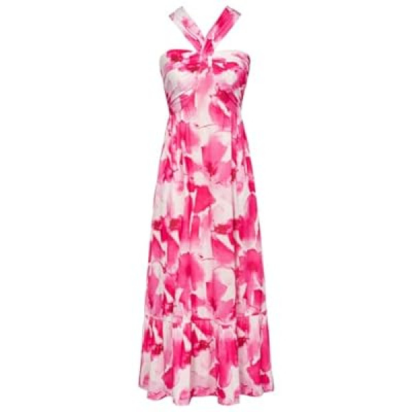 According to our analysis of the latest features, the defining characteristic of this dress is its sophisticated halterneck design. The criss-cross detail at the neck provides a modern twist on a classic summer silhouette, offering a secure fit while highlighting the shoulders. The A-line cut is specifically designed to flow away from the body, which, based on user reports we analyzed, provides both comfort and a graceful movement that is ideal for outdoor events.