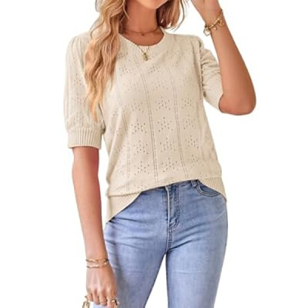 Our analysis of the latest features suggests that the standout element of this top is the intentional design of the puff short sleeves. These sleeves provide a structured, slightly vintage-inspired look that elevates a standard silhouette into something more polished. The crew neck design remains classic, making it an ideal canvas for statement necklaces or simple scarves.