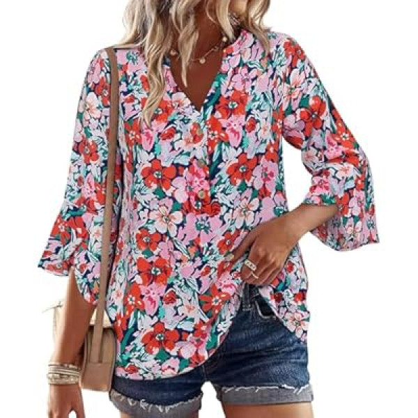 LOOKBOHO Womens Boho Tops Ruffle 3/4 Sleeve Button V-Neck Dressy Casual 2025 Fall Bell Sleeve…