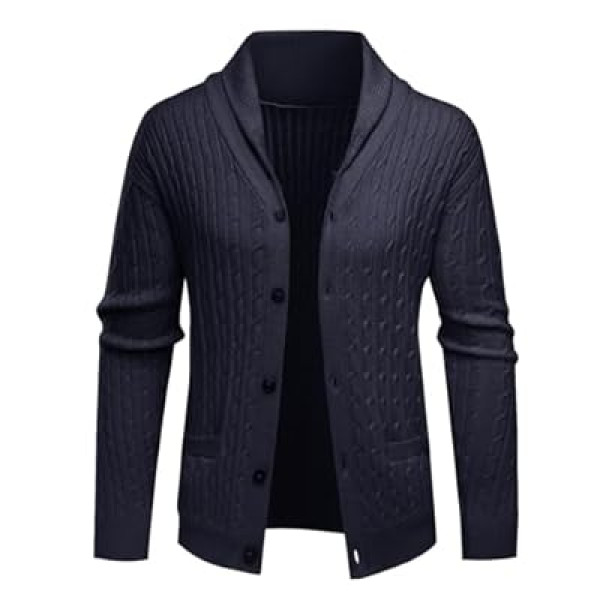 ALLOVIN Mens Cable Knit Cardigan Sweater Shawl Collar Long Sleeve Button Down with Pockets Casual B…