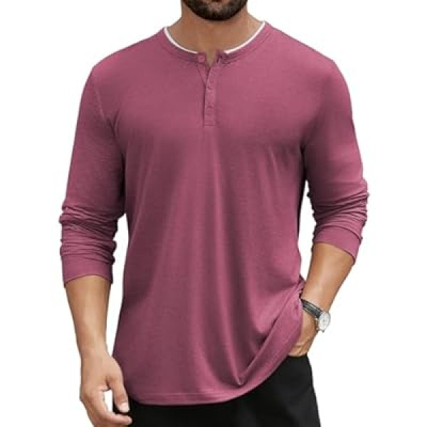Hardaddy Men's Long Sleeve Henley Shirts Casual Color Block Henley Button T-Shirt Tops