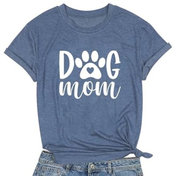 Dog Mom Tshirts Women Dog Paw Printed Mom Shirt Casual Short Sleeve Tee Tops