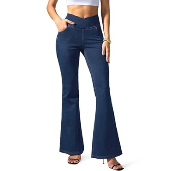 Flvsun Womens High Waisted Flare Jean Leggings Bell Bottom Jeans for Women Knit Crossover Stretchy Bo…