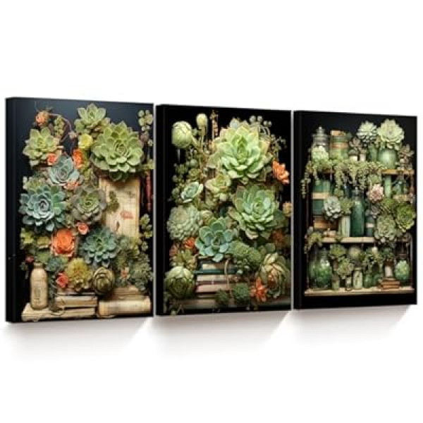 Arpilul 3 Set Succulent Wall Decor-Green plants Canvas Print, Succulent Plant Poster Canvas f…