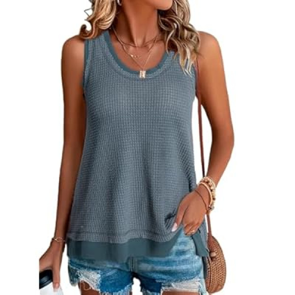 BLENCOT Women's Tops Waffle Knit Summer Tank Tops Casual Scoop Neck Sleeveless Loose Tu…