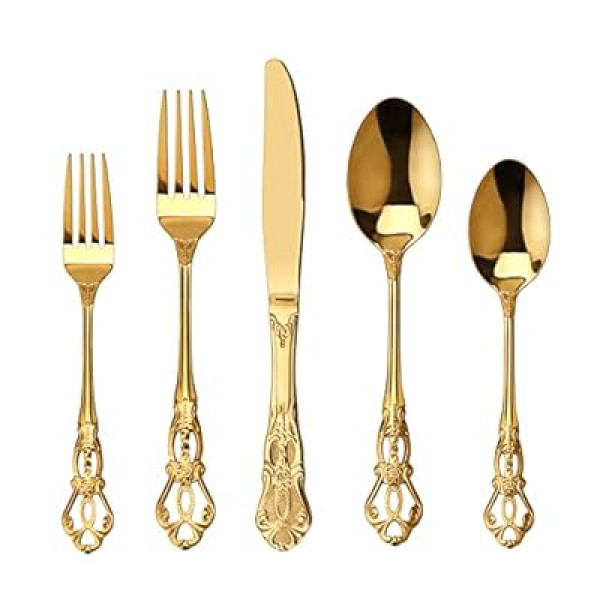 Runfly Gorgeous Retro Royal Gold Stainless Steel 20 Pieces Flatware Set, Golden Silverware Set, Anti…