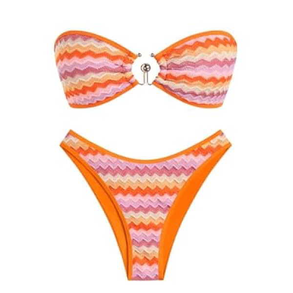 ZAFUL Crochet Bikini Sets for Women O Ring Colorblock Bandeau Bathing Suits Sexy Hig…