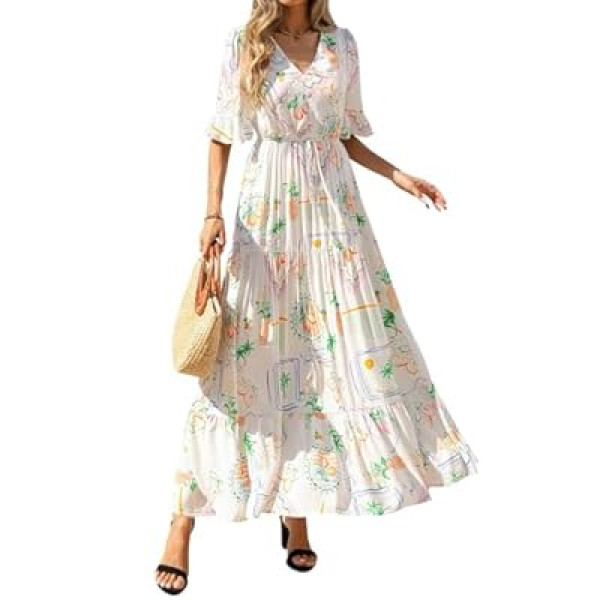 BTFBM Boho Dresses for Women 2026 Summer Spring Casual Floral Short Sleeve V Neck Flow…