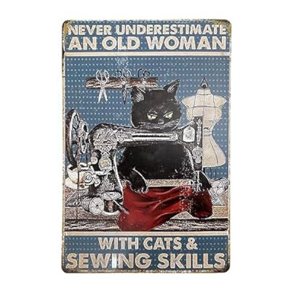 Cat Vintage Metal Tin Sign Decor Funny Retro Decor Sign NEVER UNDERESTIMATE AN OLD WOM…