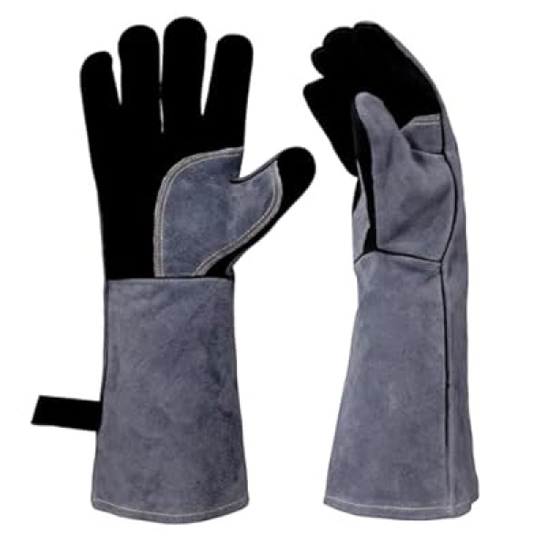 iuhkjnuh Leather Welding Gloves, 16inch 932℉ Heat/Fire Resistant, Wood Stove Gloves, Large Mitts…