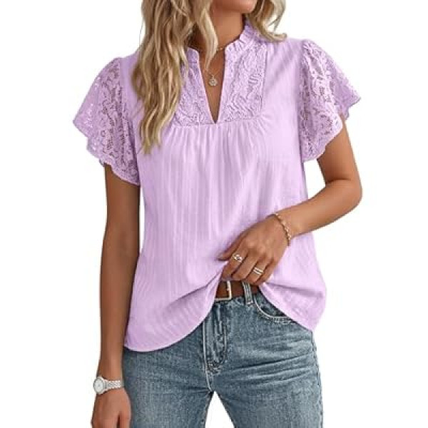 GRACE KARIN Lace Short Sleeve Tops Flowy Summer,Dressy Casual Cotton Blouses Ruffle,V…