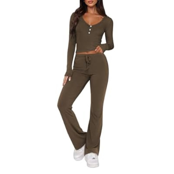 GUOLEZEEV 2 Piece Lounge Set Women Pj Set Y2k Fall Long Sleeve Shirt Pants Active Wear…