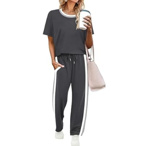 WIHOLL 2 Piece Lounge Sets for Women Matching Set Summer Outfits Short Sleeve Tops Wide…