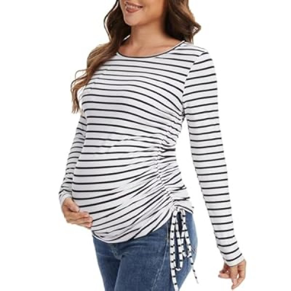 Fotociti Maternity Shirts Long Sleeve, Pregnancy Side Ruched Tops,Women’s Clothes for Mam…
