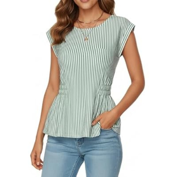 Disamer Womens T Shirts Short Sleeve Spring Striped Babydoll Pleated Blouses Tunic 2026 Vac…