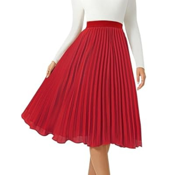 Women's Midi Skirt Elastic High Waist Pleated Skirt Knee Length Swing A-Line Casual Flowy Skirt…
