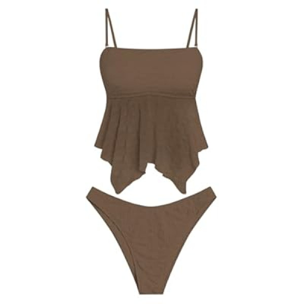 ZAFUL Tankini Swimsuits for Women Flowy Swimwear Mesh Lace Jacquard Two Piece Bathin…