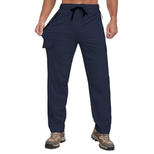 Men Lightweight Joggers Pants Hiking Zipper Pockets Quick Dry Runing Exercise Elastic Waist S…