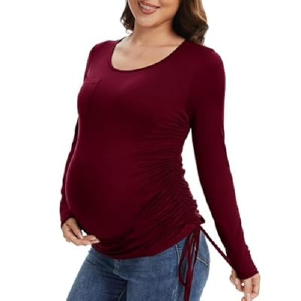 Fotociti Maternity Shirts Long Sleeve, Pregnancy Side Ruched Tops,Women’s Clothes for Mam…
