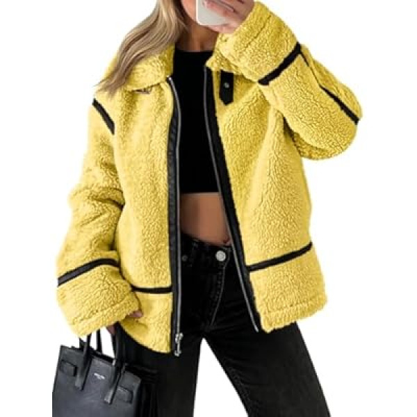 Tankaneo Womens Faux Fur Jackets Winter Trendy Sherpa Moto Leather Patchwork Zip Up…