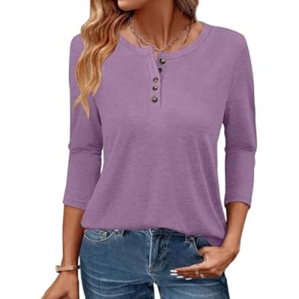 GKBK 3/4 Sleeve Womens Tops Fall Clothes Henley Casual Spring Summer Lightweight Basic Tuni…