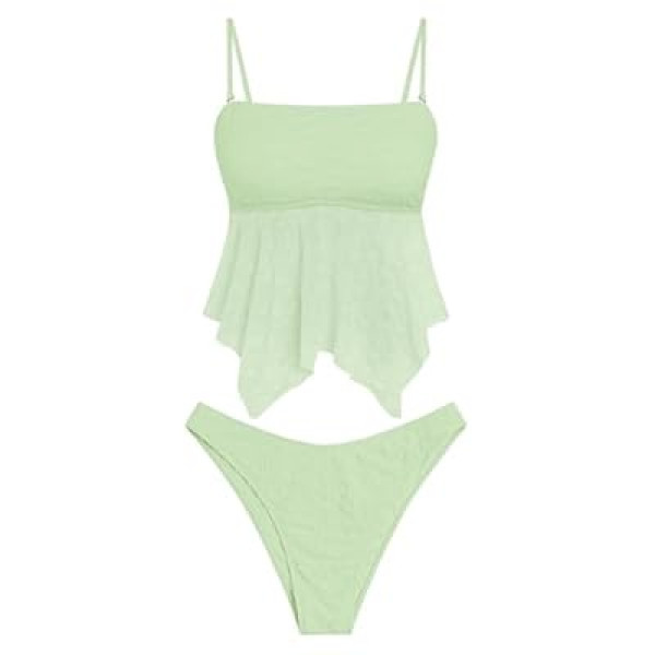 ZAFUL Tankini Swimsuits for Women Flowy Swimwear Mesh Lace Jacquard Two Piece Bathin…