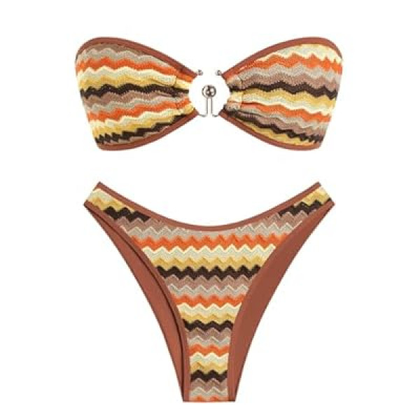 ZAFUL Crochet Bikini Sets for Women O Ring Colorblock Bandeau Bathing Suits Sexy Hig…