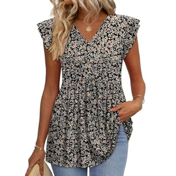WIHOLL Womens Summer Tops 2026 Babydoll Shirts Ruffle Sleeve Spring Outfits Dressy Ca…