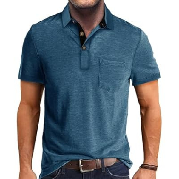 Gleam Ledra Polo Shirts for Men Basic Short Sleeve Shirt Button Solid Color Casual Tees Golf Sty…