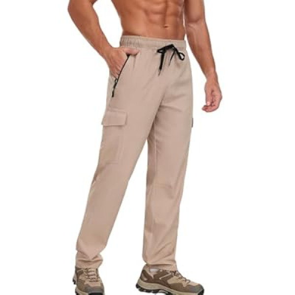 Men Lightweight Joggers Pants Hiking Zipper Pockets Quick Dry Runing Exercise Elastic Waist S…