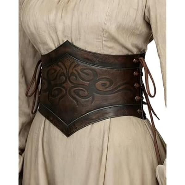 Our research into the product's construction reveals a thoughtful blend of aesthetics and functionality. The belt features a wide front panel made of high-quality PU leather, often adorned with intricate embossed patterns that evoke a medieval or Nordic feel. According to user reports we analyzed, the lace-up front is not just decorative; it allows for minor adjustments to the fit, while the elasticized back band ensures the belt remains snug against the waist.