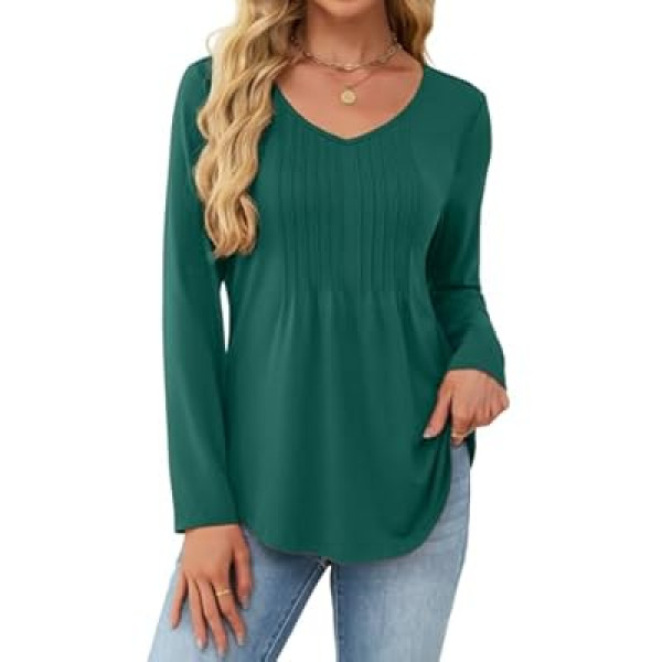 Based on our research of the product's design elements, the standout feature is the pleated V-neckline. This detail adds a layer of sophistication and texture that elevates it above a standard long-sleeve tee. According to user reports we analyzed, the V-neck is cut to a flattering depth—providing an elongated look without being overly revealing.