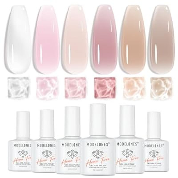 modelones Jelly Gel Nail Polish Set, French Tip Base Color Gel Polish Milky White Nude Pink N…