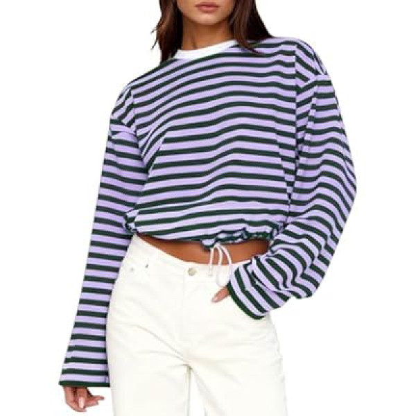 The MONCCIZA Women's Long Sleeve Striped Sweatshirt appears to be a highly functional addition to a modern wardrobe. By combining the comfort of a traditional pullover with the trendy elements of a cropped, oversized cut, it meets the needs of the contemporary consumer. Based on our research-based curation of user experiences, this piece earns high marks for its aesthetic appeal, fabric quality, and ease of styling.
