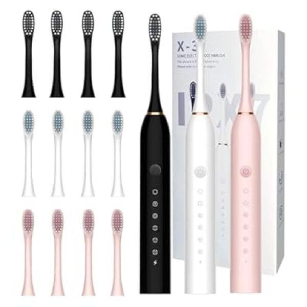 First off, the unboxing experience is great. You get three separate rechargeable handles (perfect for households where everyone wants their own color) and—wait for it—12 replacement brush heads. Since dental professionals recommend changing your brush head every 3 months, this set literally covers three people for an entire year. That is incredible value!