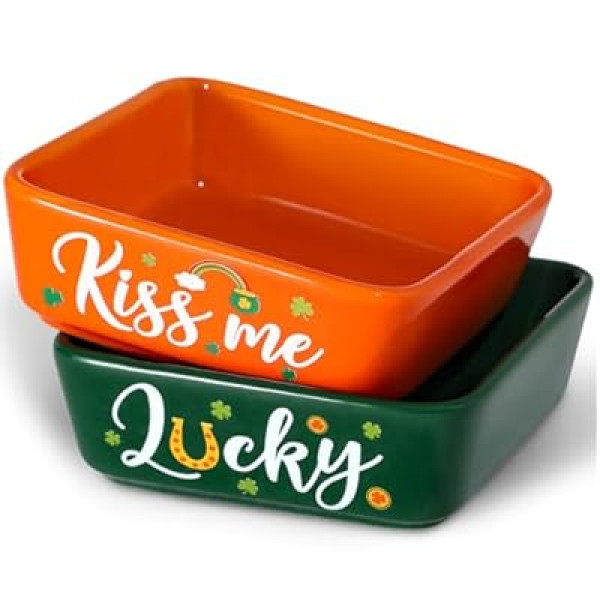According to our analysis of the product features, these mini dishes are crafted from high-quality ceramic, ensuring a sturdy feel and a polished finish. The set includes two distinct designs: one featuring the playful "Kiss Me Lucky" text and another adorned with a classic Shamrock and rainbow motif. The use of traditional St. Patrick’s Day colors—vibrant greens, whites, and gold accents—makes them immediately recognizable as festive centerpieces.