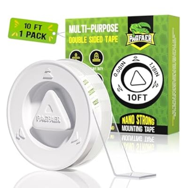 PAGFAER Double Sided Tape Heavy Duty, 2PCS Double Sided Mounting Nano Tape 10FT, Clear & Tough Tw…