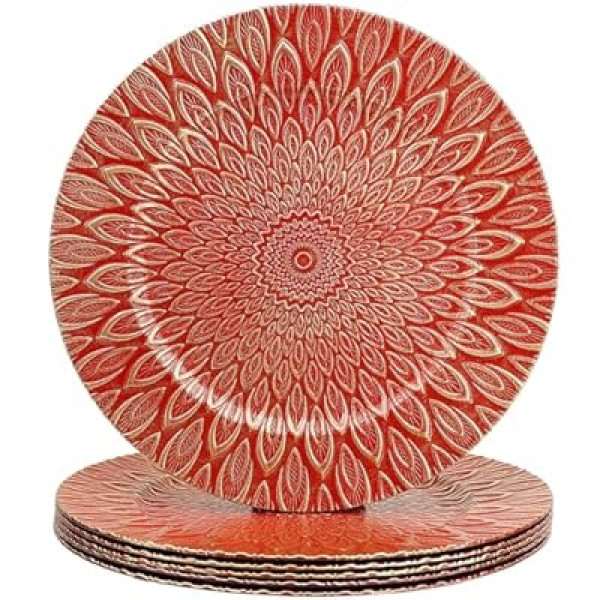 Our analysis of the product features suggests that the standout element of these chargers is the intricate peacock feather motif. Unlike plain, flat chargers, the SforGUVA set features an embossed texture that catches the light and adds a layer of visual interest to the table. According to user reports we analyzed, the deep red hue is particularly vibrant, making it an ideal choice for seasonal celebrations or romantic dinners.