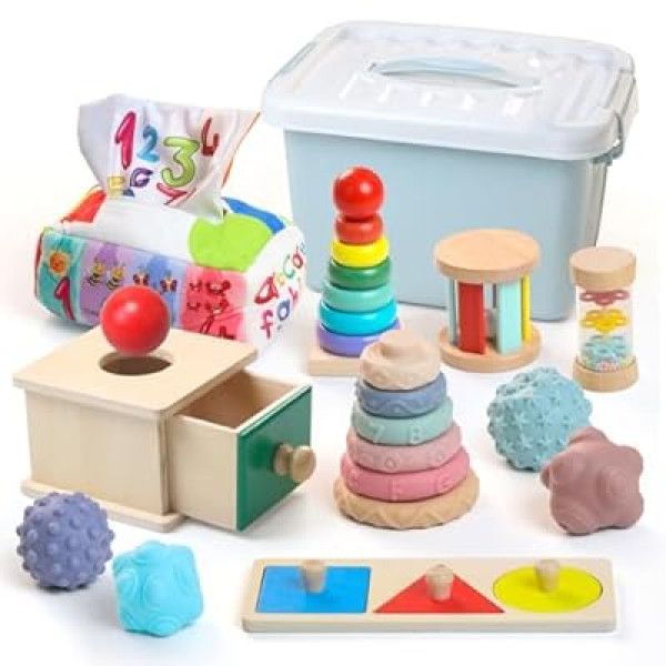 In the crucial developmental window between 6 and 12 months, babies transition from basic grasping to more complex problem-solving and fine motor coordination. Our research into the early childhood toy market suggests that multi-functional wooden sets are becoming a staple for parents seeking to implement Montessori principles at home. The Teekdeer Montessori Toys for Babies 8-in-1 set is designed to address these developmental milestones through a curated collection of sensory and cognitive activities.
