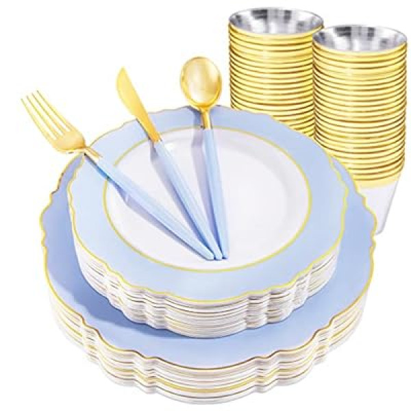For those seeking a balance between sophistication and practicality, the WDF 150-piece Baby Blue and Gold Plastic Dinnerware Set appears to be a premier option. Our research suggests that its combination of durable, BPA-free materials and high-end design makes it a reliable choice for any host looking to elevate their table decor. Whether you are celebrating a new arrival or hosting a formal brunch, this set provides the aesthetic of a professional event planner with the ease of a disposable solution.