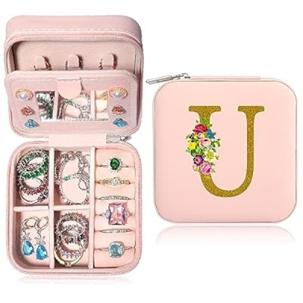 Our analysis of the latest features suggests that the standout attribute of this jewelry box is the gold-toned "Initial U" embroidered on the lid. This personalization transforms a standard storage item into a thoughtful gift. The soft pink PU leather exterior provides a sophisticated look that users report is both water-resistant and easy to clean. According to user reports we analyzed, the zipper is sturdy and operates smoothly, ensuring that contents remain secure during transit.